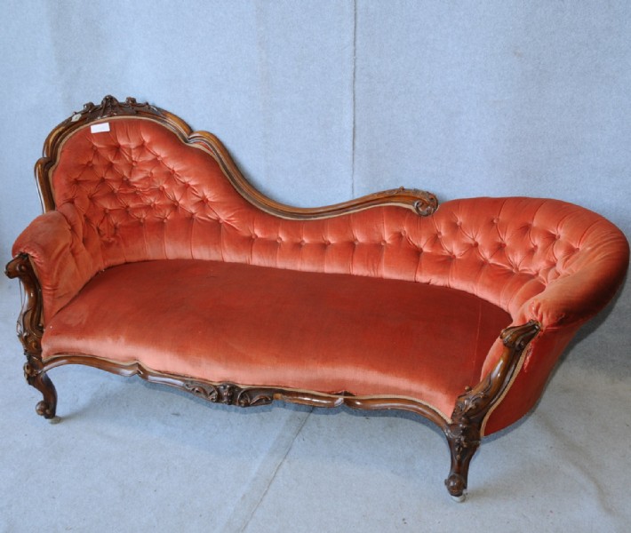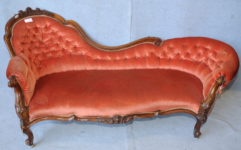 A Victorian walnut settee, the single ended frame carved with scrolls and flowers, on French cabriole legs.