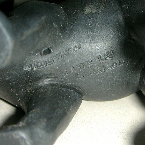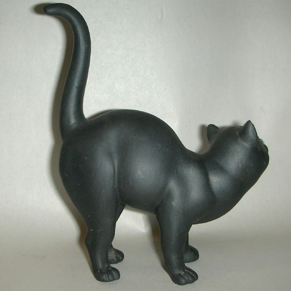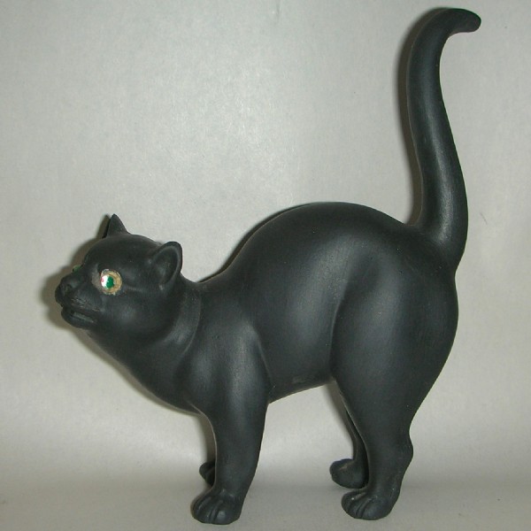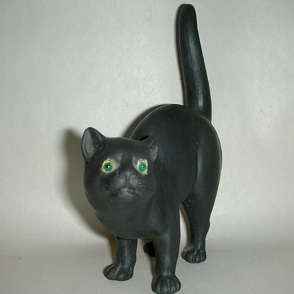 Wedgwood Black Basalt Cat, England, c. 1913, by Ernest Light, set with glass eyes, impressed mark.