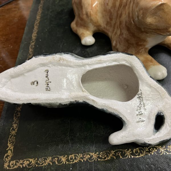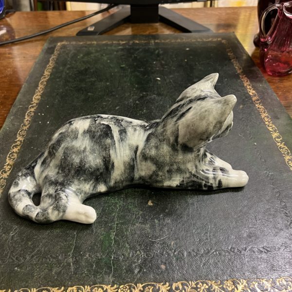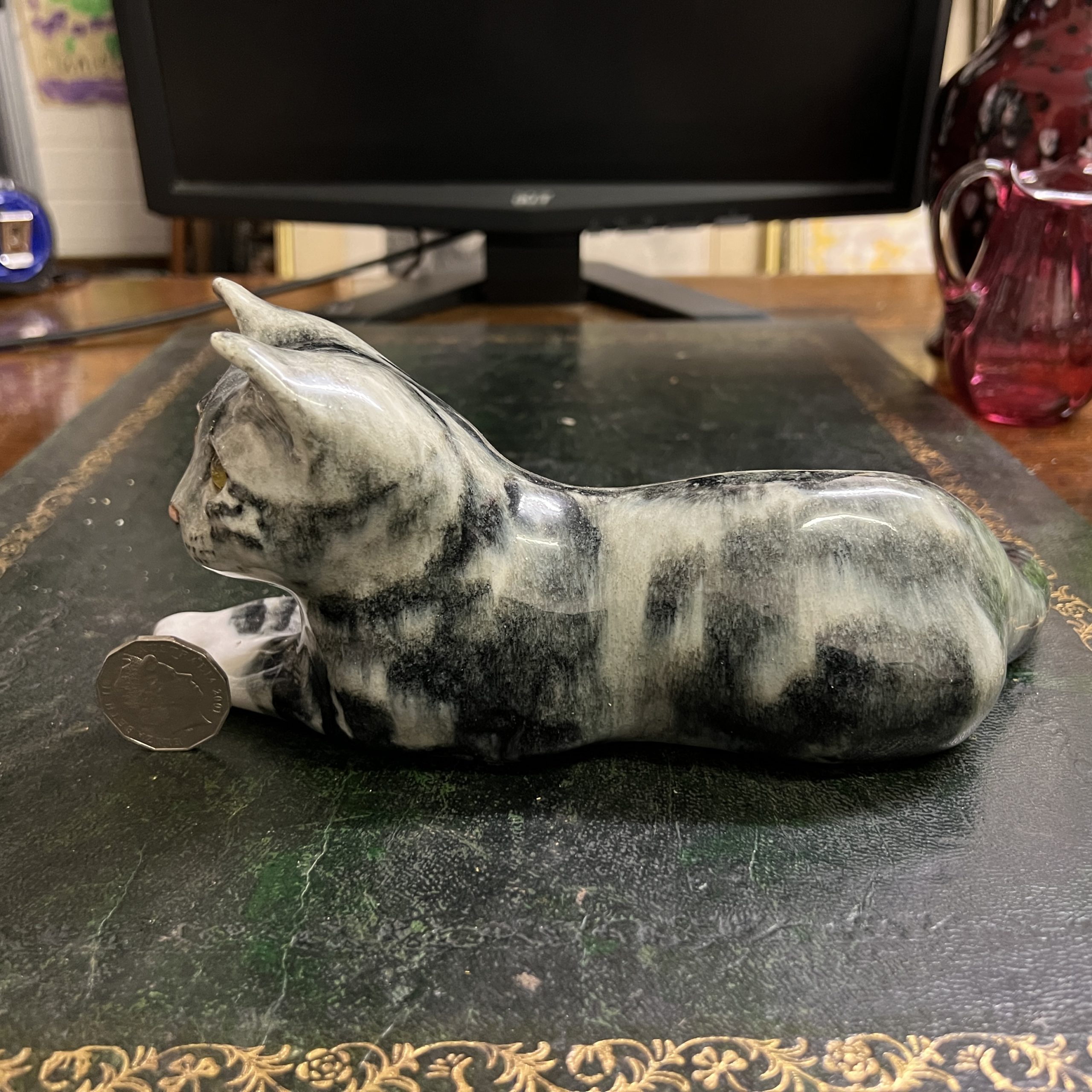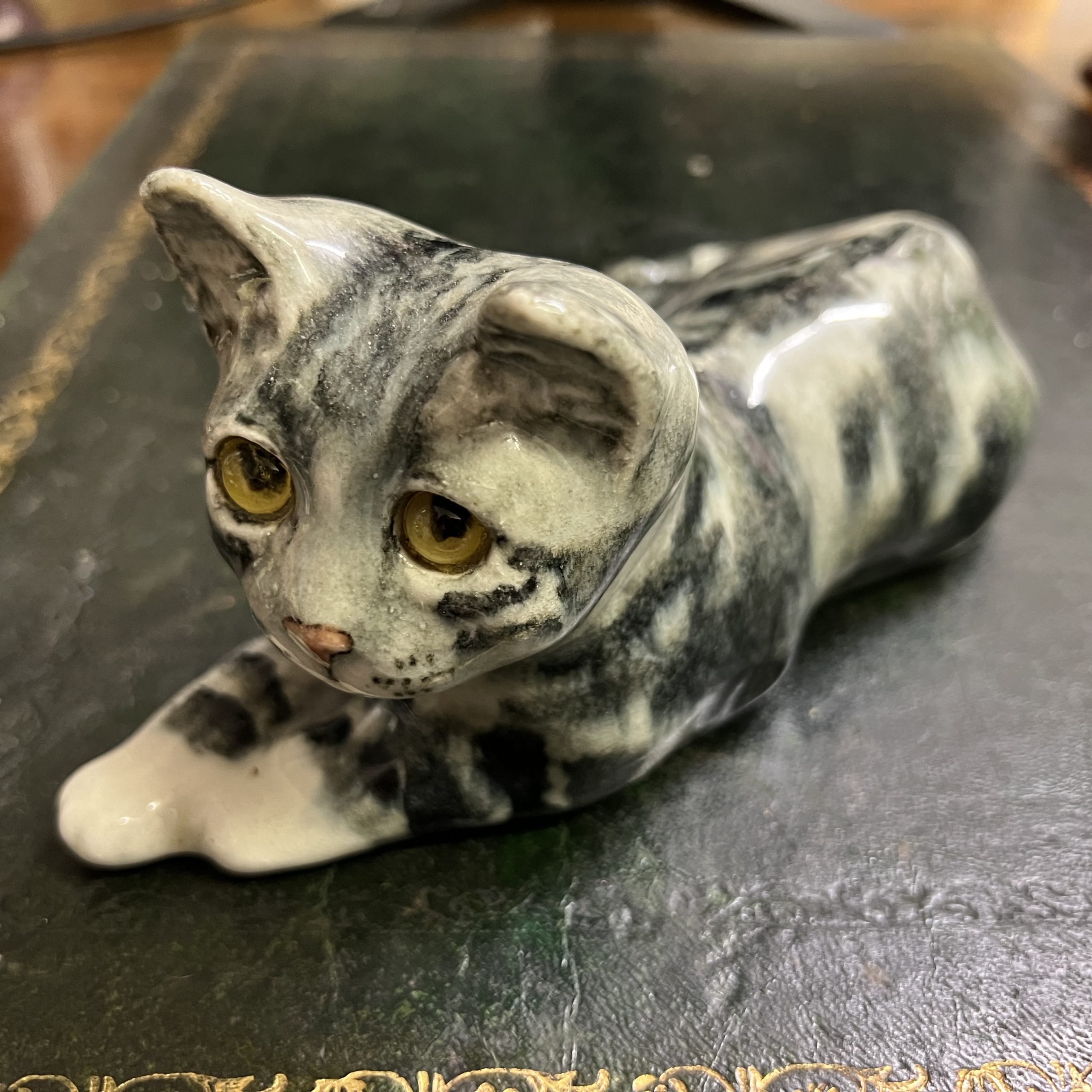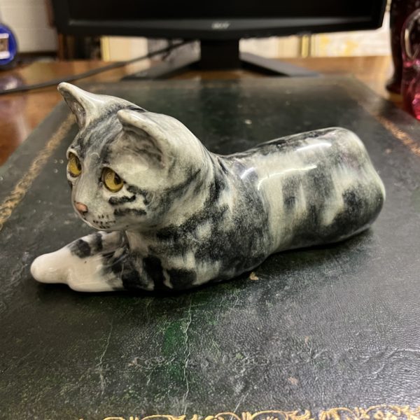 Winstanley pottery size 3 resting cat cathedral glass eyes signed