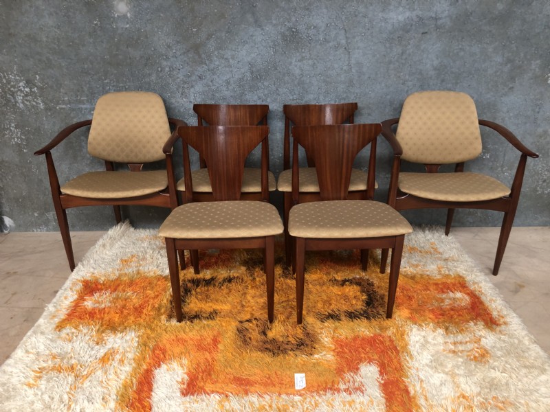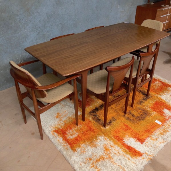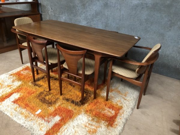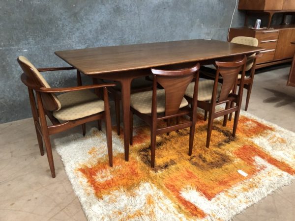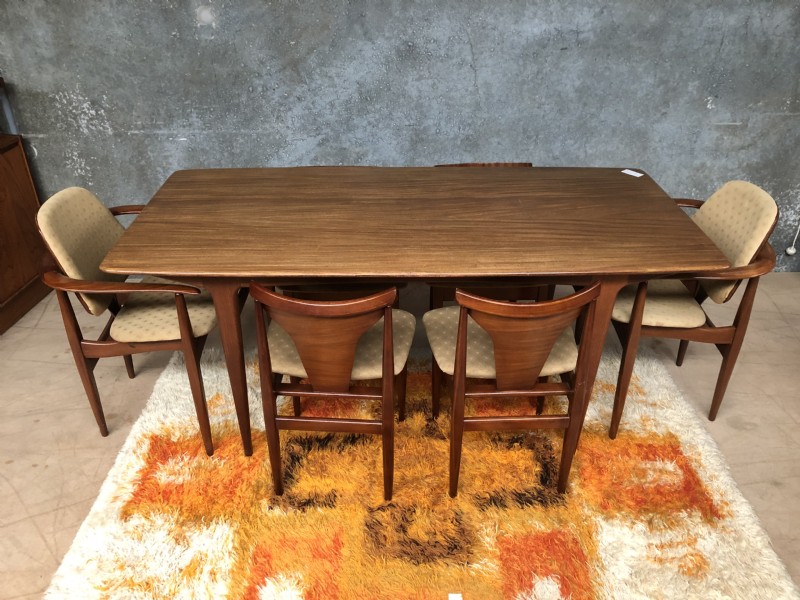 A Younger teak dining table and 6 Elliotts of Newbury chairs (Eon). The measurements are for the table